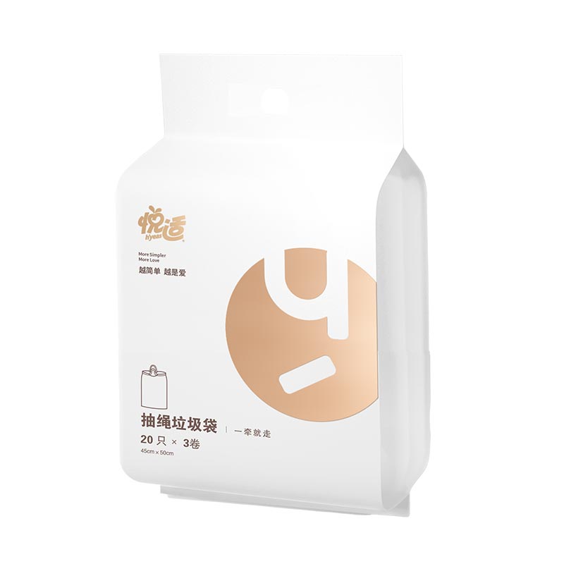 QZCKE060(包装)悦适抽绳式清洁袋垃圾袋白色三卷(45cm*50cm)60只装