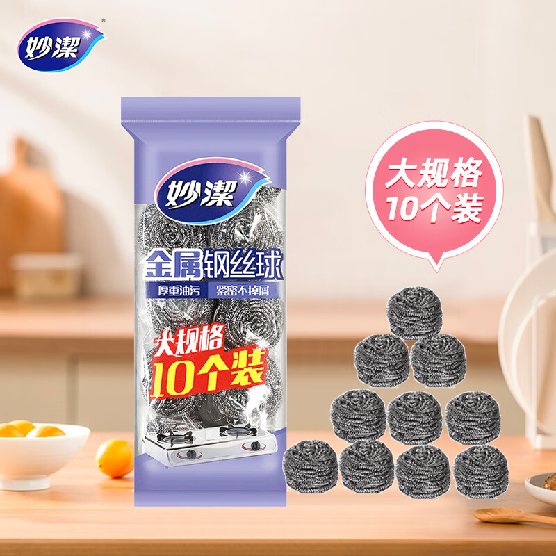 妙洁 钢丝球十个装 家用实惠不掉屑